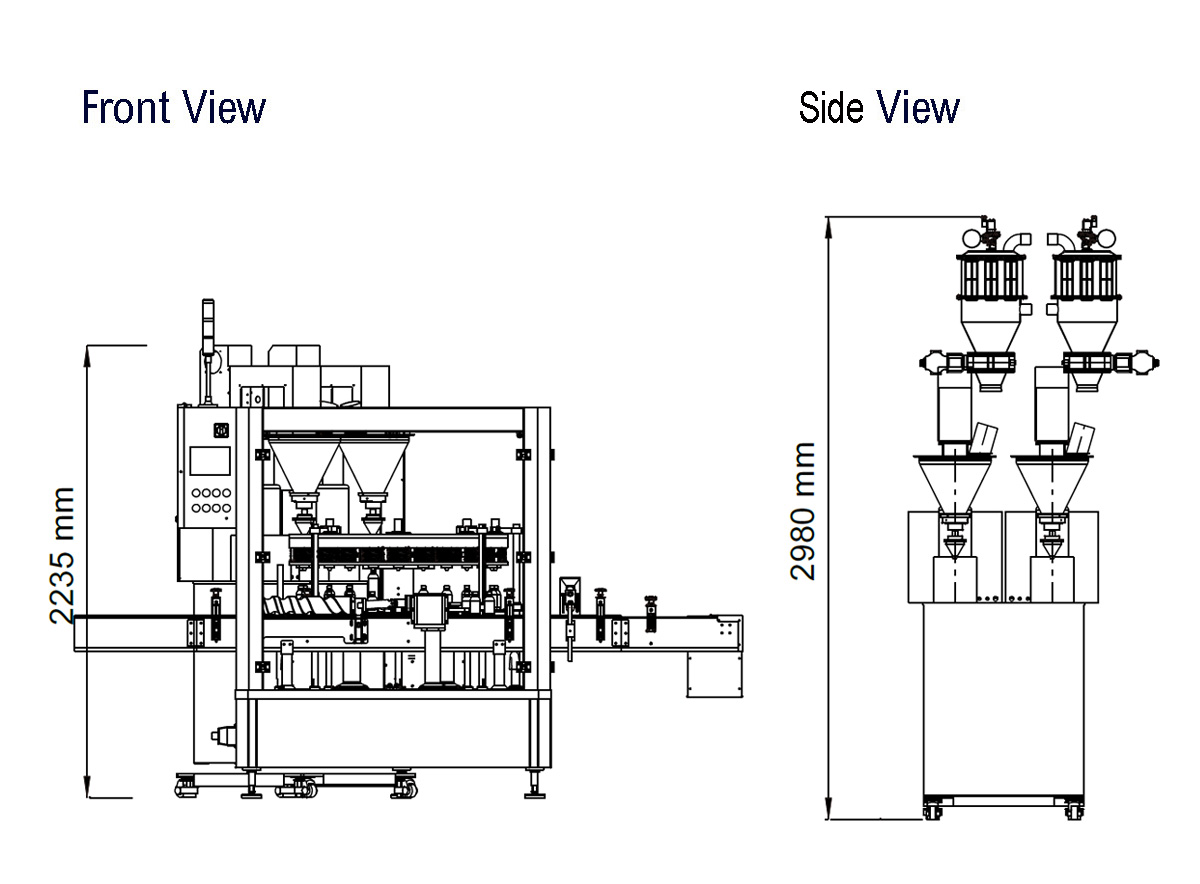 The CVC 6088-2R24 Automatic Rotary Powder Filling Machine is designed to fill powder products into containers provided to its infeed conveyor and transported through its rotary continuous motion mechanism. The Powder dosing uses servo motor driven auger dosing system for accuracy volume.